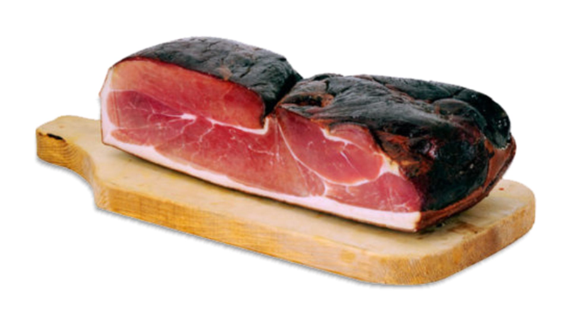 Prosciutto della Foresta Nera 1/2 - Prosciutto crudo disossato ed affumicato. La denominazione d'origine è tutelata in Germania da una severa normativa che garantisce al consumatore qualità, bontà e rigorosa provenienza del prodotto dalla zona di cui porta il nome. Consigliato per taglieri e panini gustosi.