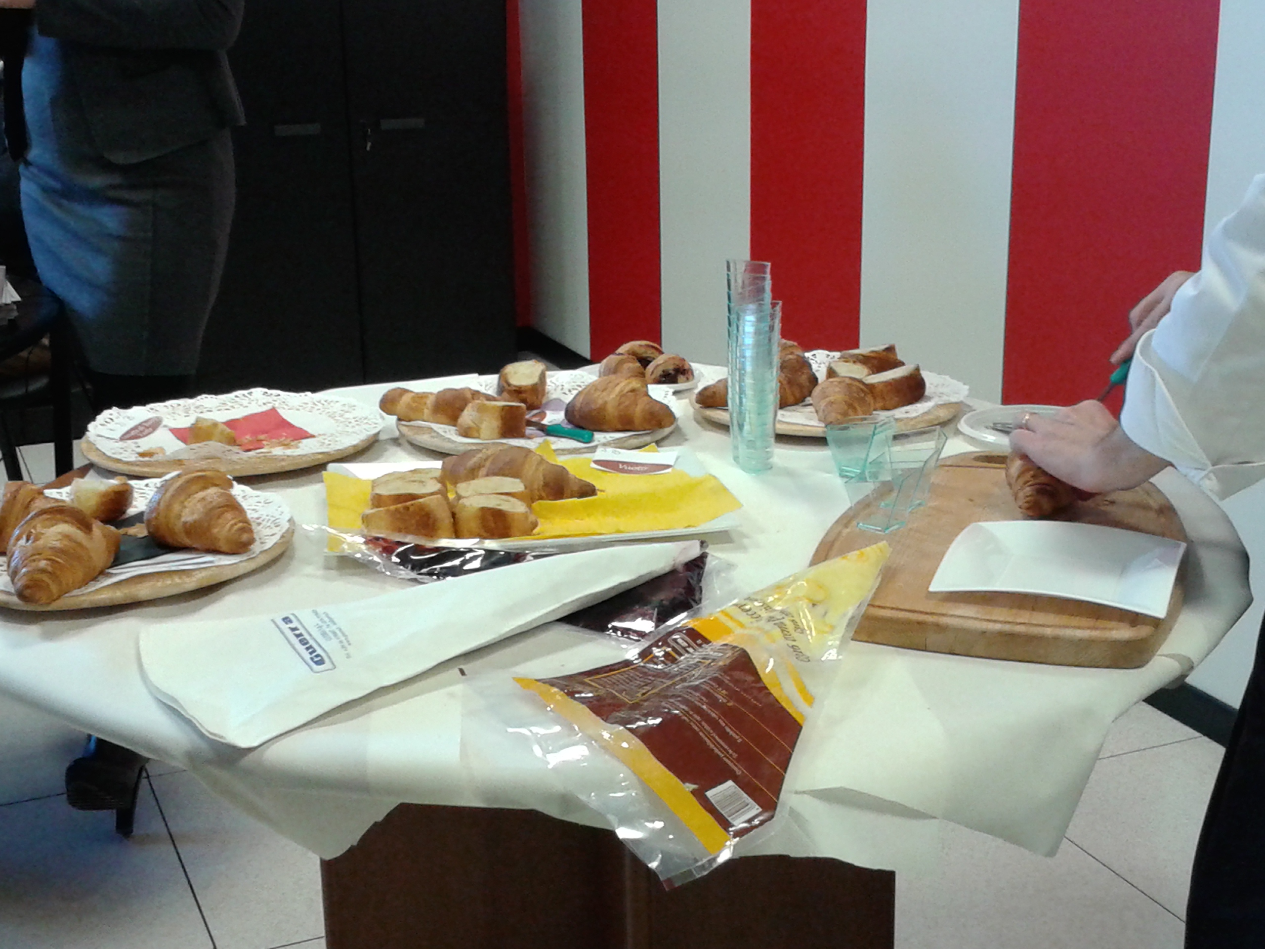 Un dolce profumo aleggiava nei nostri uffici già dal primo mattino di venerdì 30 gennaio. In cucina regnavano sovrani 8 vassoi di brioches vuote di 5 diverse tipologie: il croissant dritto; quello glassato; il croissant al burro; quello al burro francese; e il cornetto Regal. La sala riunioni era pronta per accogliere la nostra forza vendita: il tavolo apparecchiato, il video proiettore; e poi piattini, tovaglioli, posate…. Vi chiederete: perché tutta questa preparazione? Perché anche oggi in Surgel è stato un giorno speciale: sono venuti a trovarci due responsabili della ditta Guerra, azienda produttrice delle buonissime creme in sac à poche surgelate.