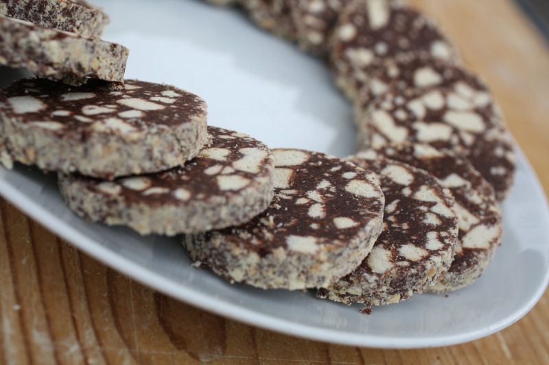 - Il Salame al Cioccolato senza Glutine: fratello gemello di quello classico, ma i biscotti sono preparati con amido di mais e farina di riso; il risultato è sempre eccellente e non si nota differenza di sapore.