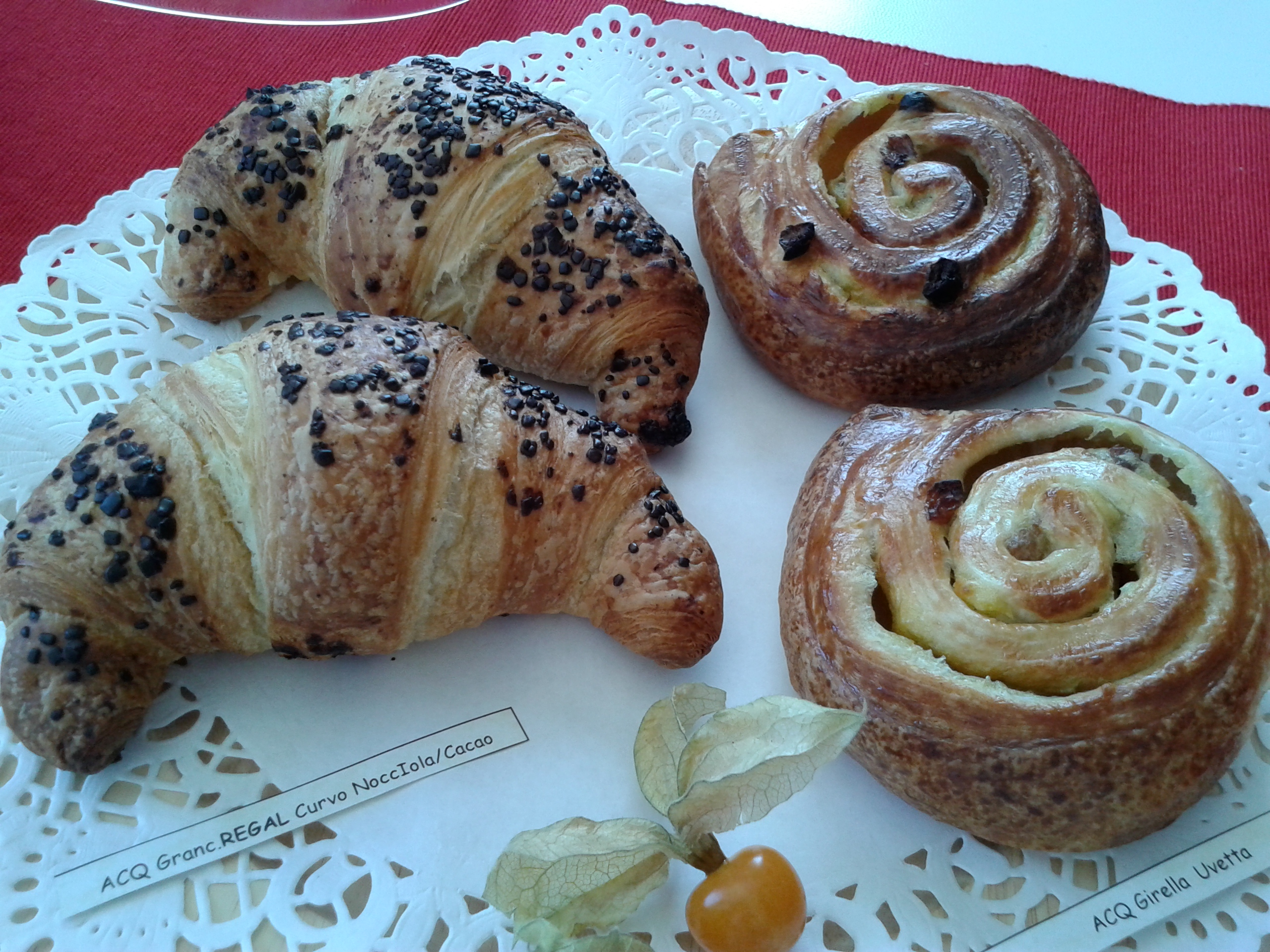 Il tavolo della sala riunioni era colmo di vassoi, alzatine, piatti di portata dalle forme più strane, e tutti erano decorati con tovagliette di pizzo bianche sulle quali troneggiava tutto l’assortimento dei croissant Acquaviva: uno spettacolo! Ragazzi non vi dico i profumi… Mancava ancora un’ora all’arrivo degli agenti ed io ne avrei morsa volentieri una! In questa azienda non si può stare a dieta, mangiare fa parte del nostro lavoro e devo dirvi che è la parte più piacevole, se smetti di salire sulla bilancia!