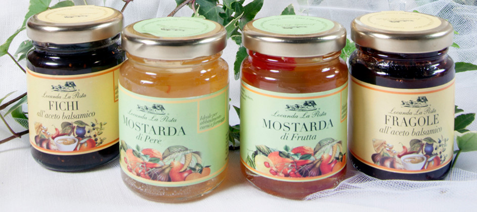 La gamma di prodotti è davvero ampia: dalle mostarde alle gelatine; dai sughi di selvaggina a quelli di verdura; dalle salse classiche a quelle speciali per i formaggi; dai condimenti pronti ai KIT Bruschette fino ad arrivare ai sapori dolci con le confetture e la piccola pasticceria.