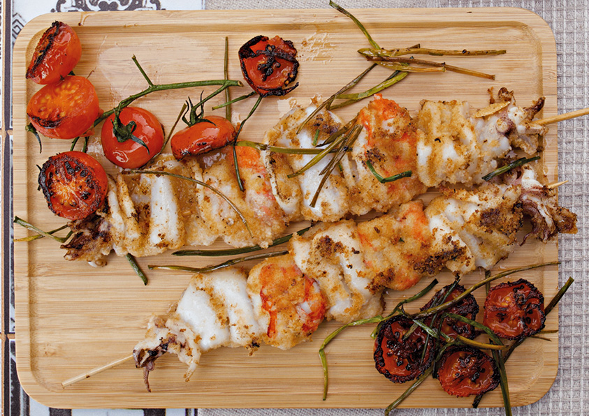- I nuovi spiedini di calamari e gamberi. Anche questi precotti, già panati alla romagnola, con il pangrattato e leggermente insaporiti; dopo 8/10 minuti a forno a 180° sono pronti. Un calamaro così tenero, non l’avevo mai assaggiato.