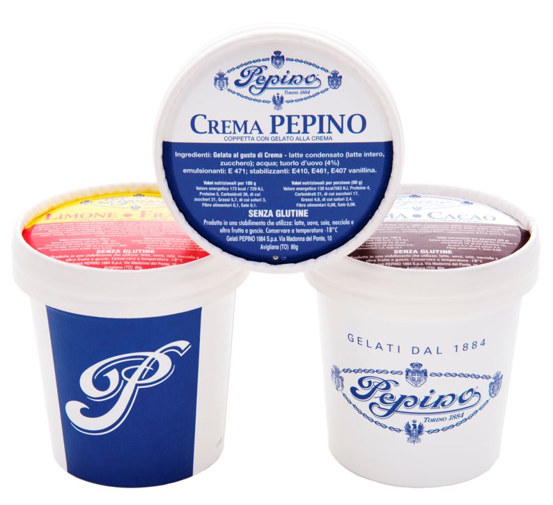 Già il nome “gelateria di lusso pepino” descrive l’artigianalità del prodotto. Qualità straordinaria e una storia che vanta ben 4 stemmi reali. Un gelato con un marchio storico che dal 1884 produce a Torino per le case reali, una qualità straordinaria, che fa fare la differenza e che qualifica il tuo locale.