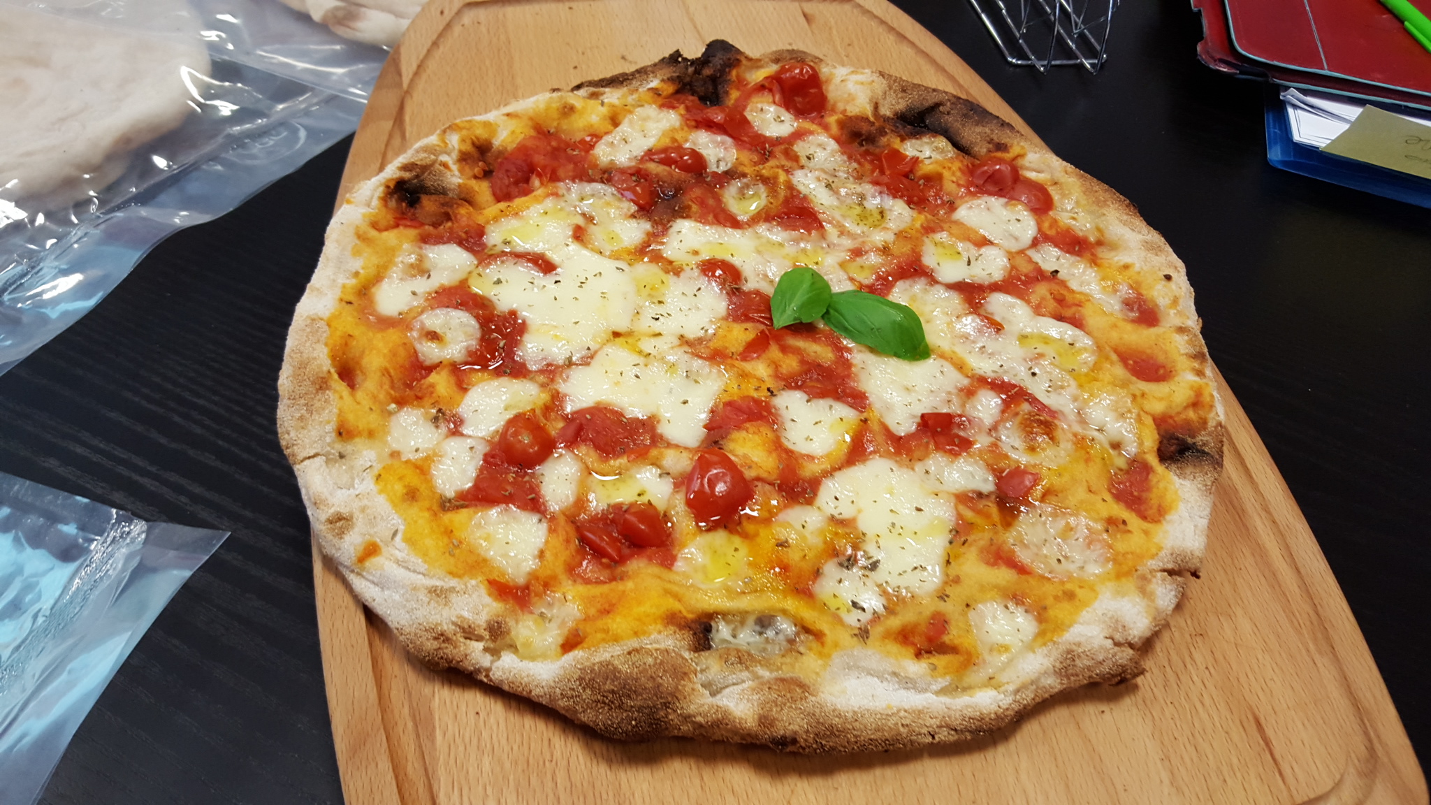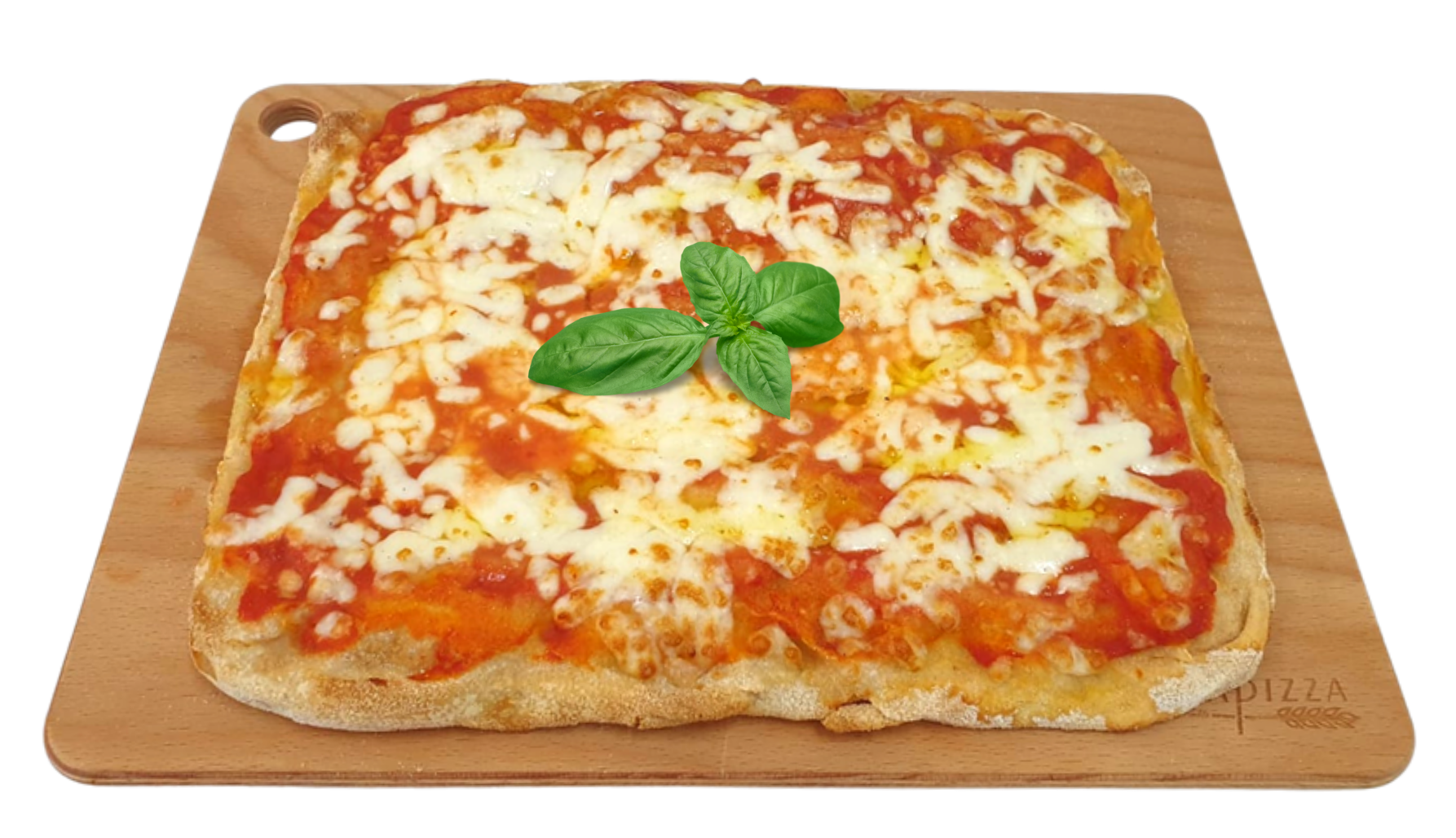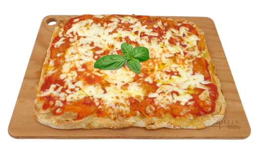 Pasta lievitata 24 ore, pomodoro italiano, vera mozzarella messa a crudo.