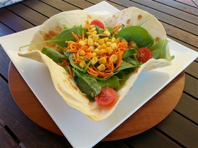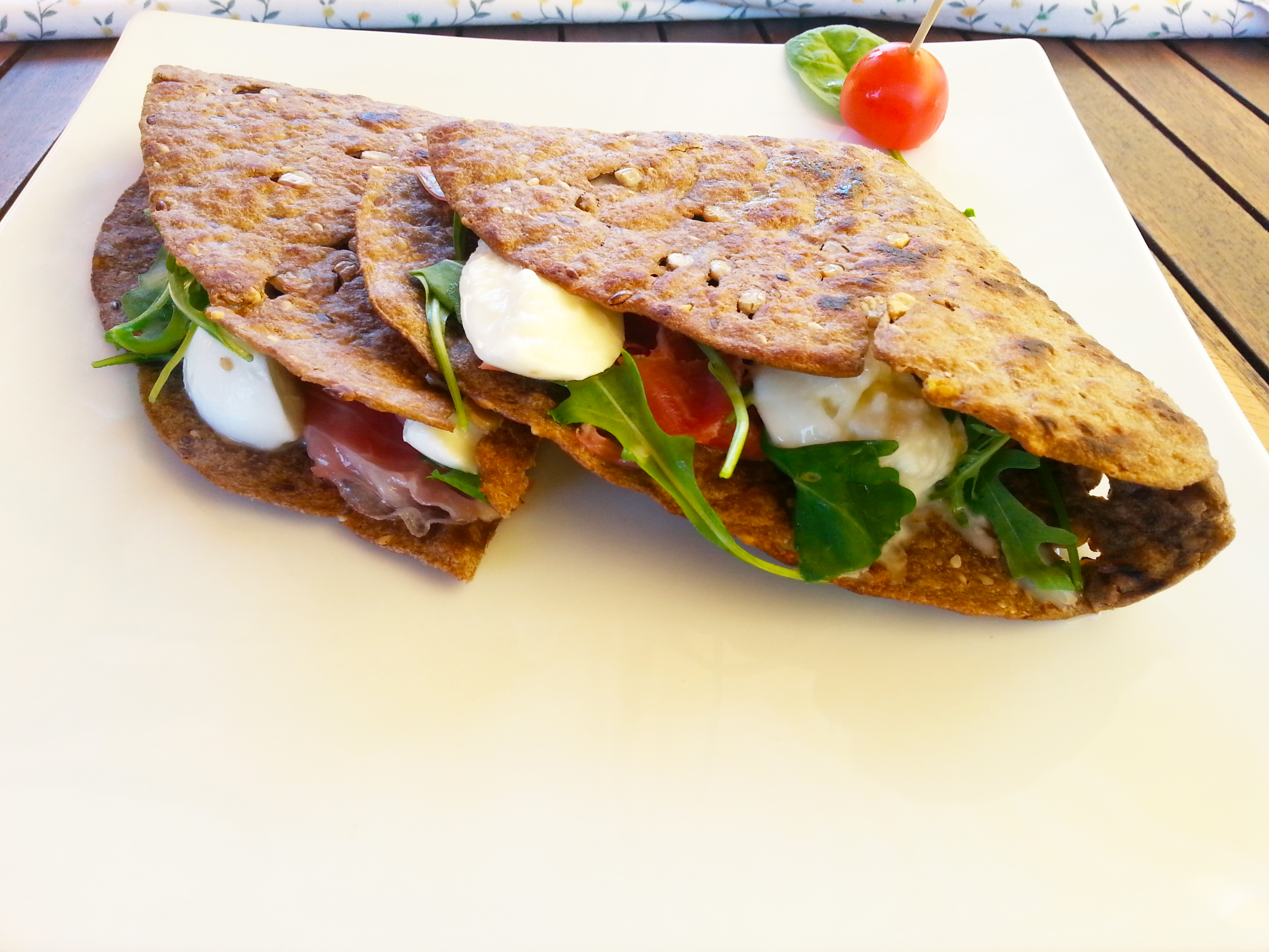 La piadina che trattiamo, per la sua elasticità viene chiamata“arrotolosa” e in effetti si presta ad essere arrotolata con facilità senza che si rompa.
