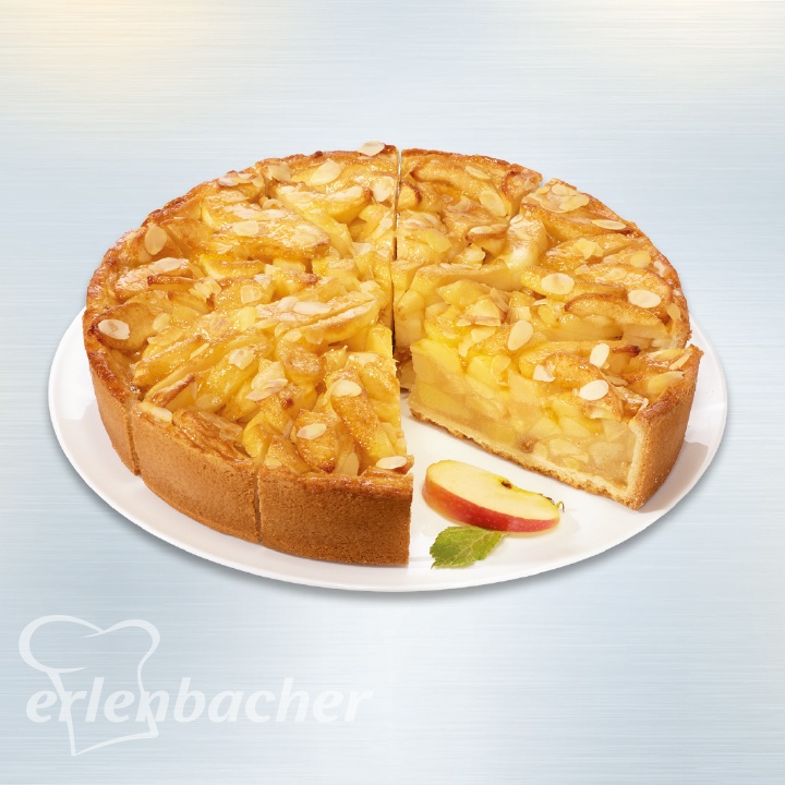 Premium Apple Pie - Deliziosa torta di mele con una base di pasta frolla croccante e grosse fette di mela che donano un aspetto artigianale, completata da mandorle in scaglie, che regalano extra croccantezza. Ideale da servire calda con una pallina di gelato e una crema calda sul piatto.