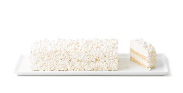 Meringata trancio lunga - Una spettacolare Meringata proposta nella versione a trancio. Due strati di friabile meringa farciti con crema semifreddo al latte e panna, decorati con granella di meringa. Un dolce fresco ed elegante, ottimo come proposta per il fine cena!