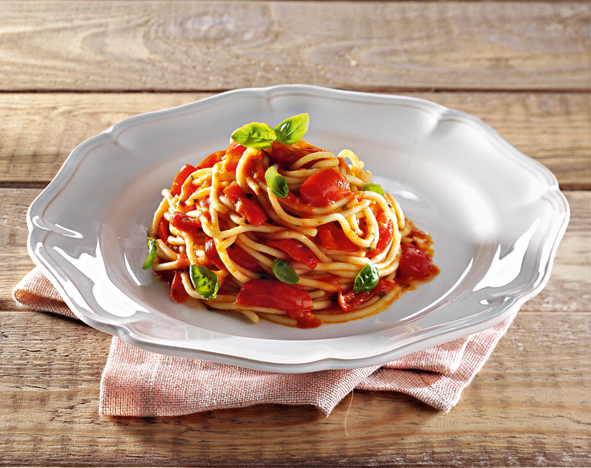 Partiamo dai primi più semplici come le Mezze Penne al pomodoro e gli Spaghetti classici al pomodoro, ideali per un pranzo leggero ma completo, ottimi da proporre come pietanza vegetariana per chi non gradisse la carne.