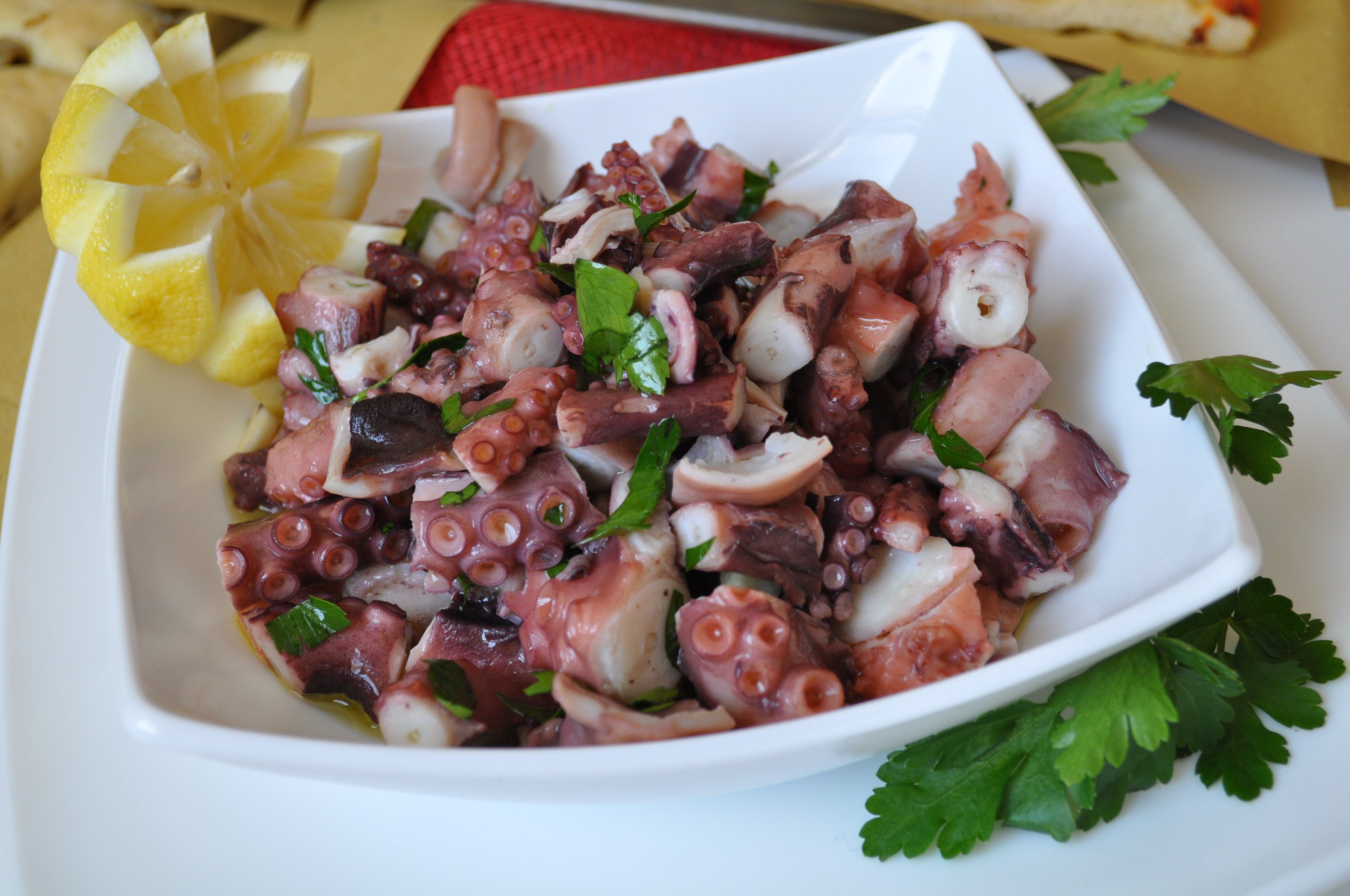 CESTINO LIGURE: dadolata di polipo*, patate lesse, fagiolini, pinoli e pesto.