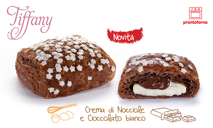 Due novità belle da vedere e con un ripieno cremoso e morbido: Il Tiffany Black&White con crema di Nocciole e Cioccolato Bianco con un impasto al cacao, decorato con zuccherose stelline bianche!