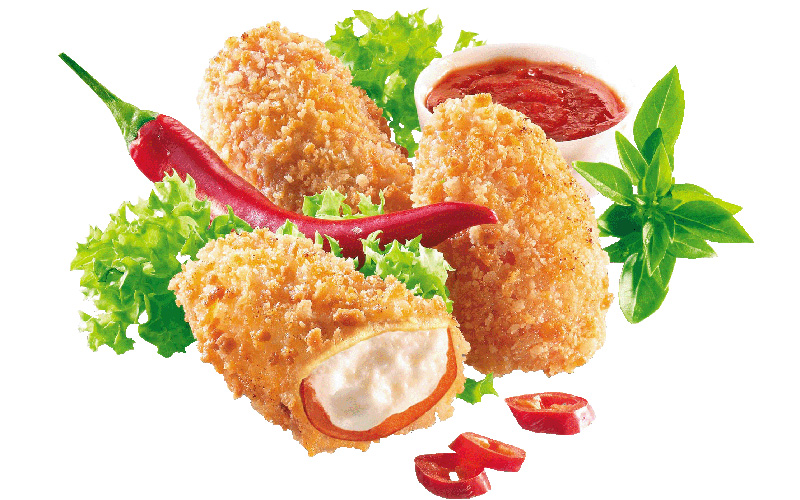 Ti offriamo dai classici fritti all’Italiana, come olive all’ascolana, mozzarelline panate e arancini di riso, ai prodotti a base di pollo aromatizzati, come alette Piccanti, o le crocchette, fino ad arrivare ai prodotti vegetariani e alle specialità della cucina TEX MEX, senza dimenticare i tranci di focaccia e di pizza già cotti, che si possono “cubettare” a piacere.