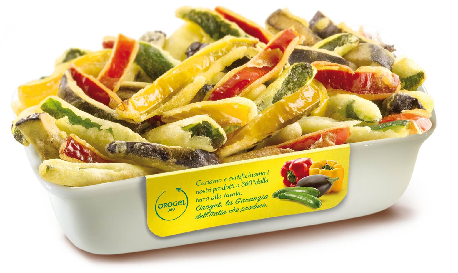 Ci sono poi le verdure PASTELLATE: una croccante pastella avvolge zucchine, melanzane, peperoni, cipolle, carote, tutte a bastoncino, per un contorno pronto in pochi minuti di forno ventilato, oppure gli anelli di cipolla e di peperone per un contorno alternativo legato alla ristorazione serale.