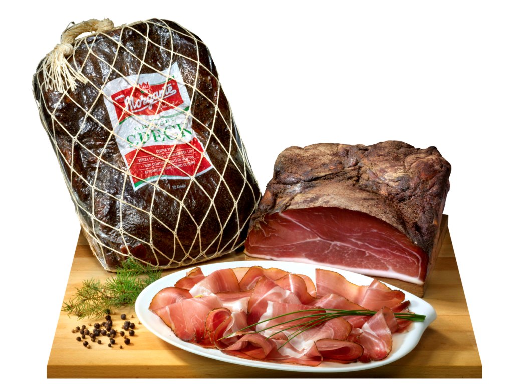 Abbiamo poi fatto una scelta “controcorrente” per quanto riguarda i prosciutti crudi, dove troviamo dai Parma stagionati minimo 16 mesi al crudo estero (lavorato e stagionato in Italia, ma proveniente da allevamenti esteri).