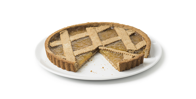 CROSTATA ALLA CREMA CATALANA 14 FETTE: un guscio di pasta frolla racchiude la golosa crema catalana.